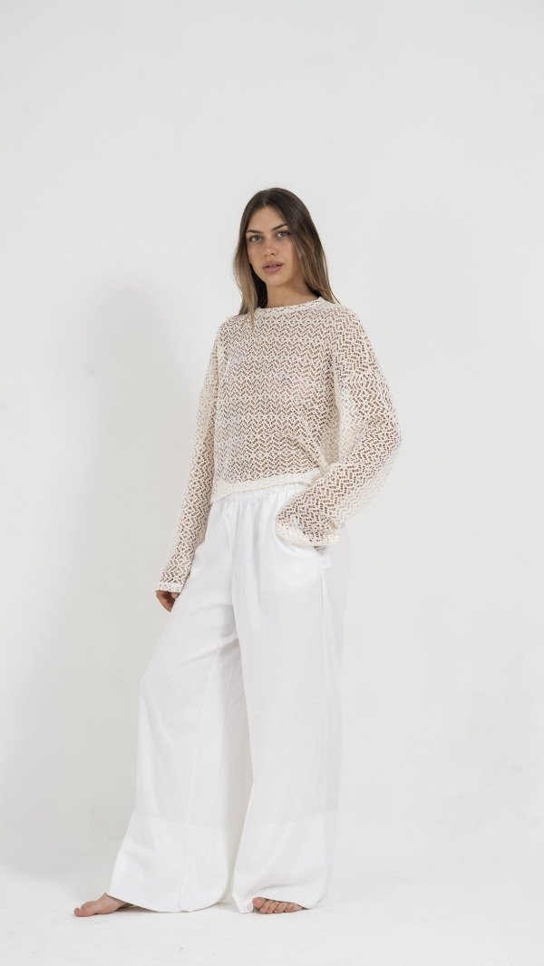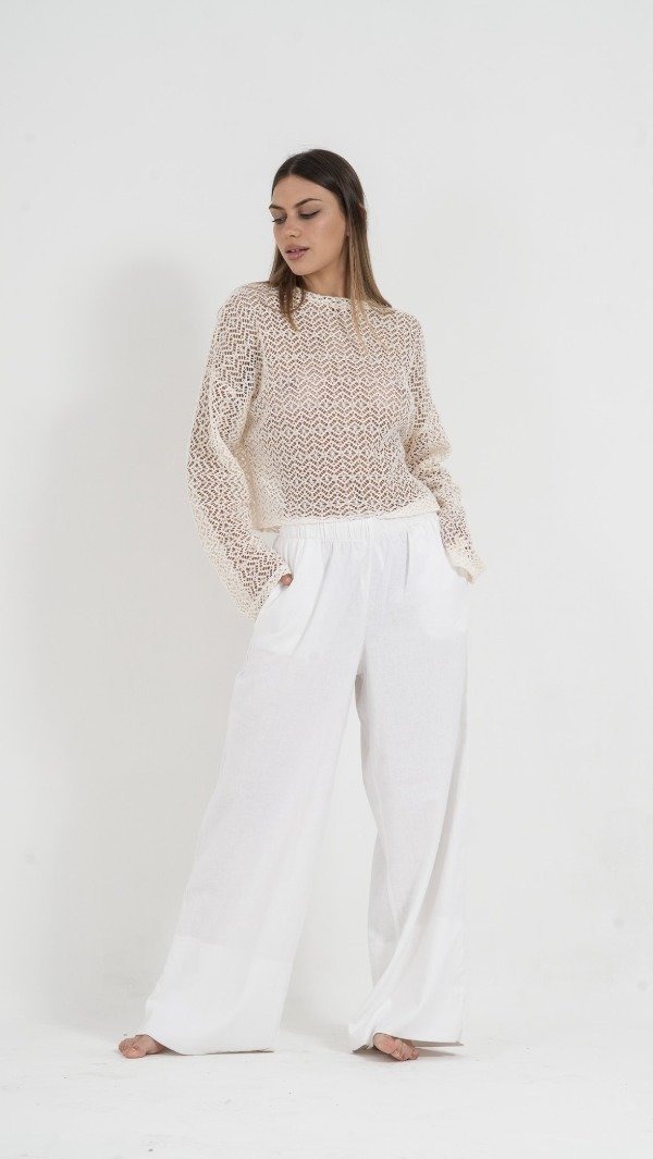 Palazo de lino sastrero de alta calidad. Corte amplio y fluido. Bolsillos funcionales, manteniendo la elegancia del diseño. Perfecto para un look minimalista y atemporal.